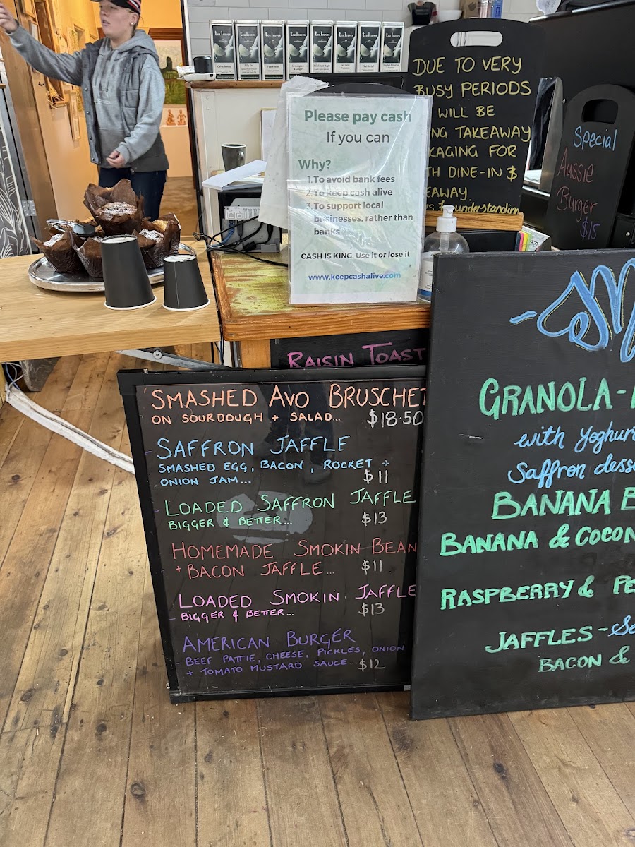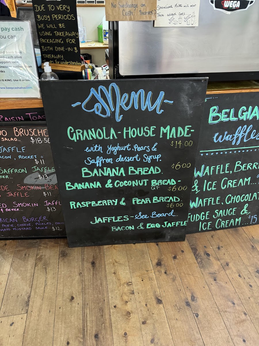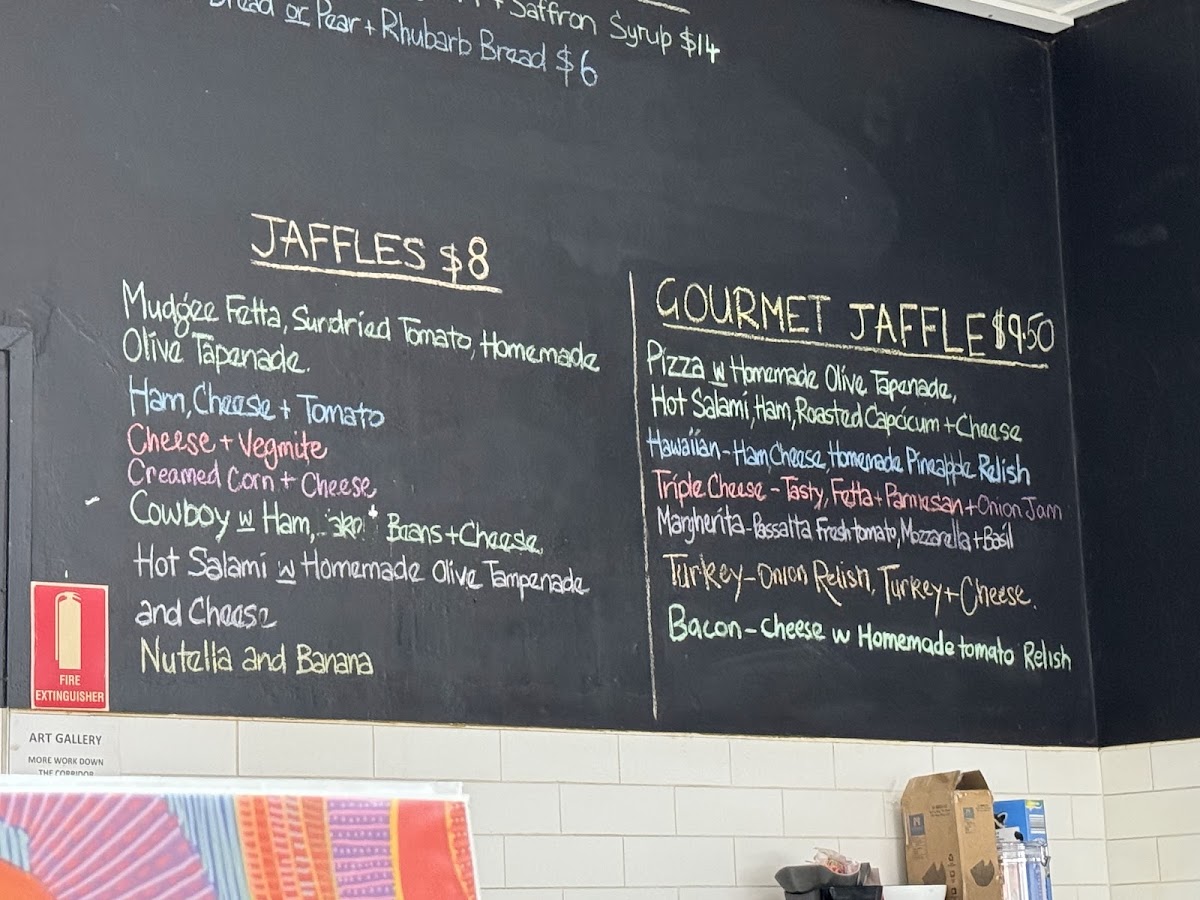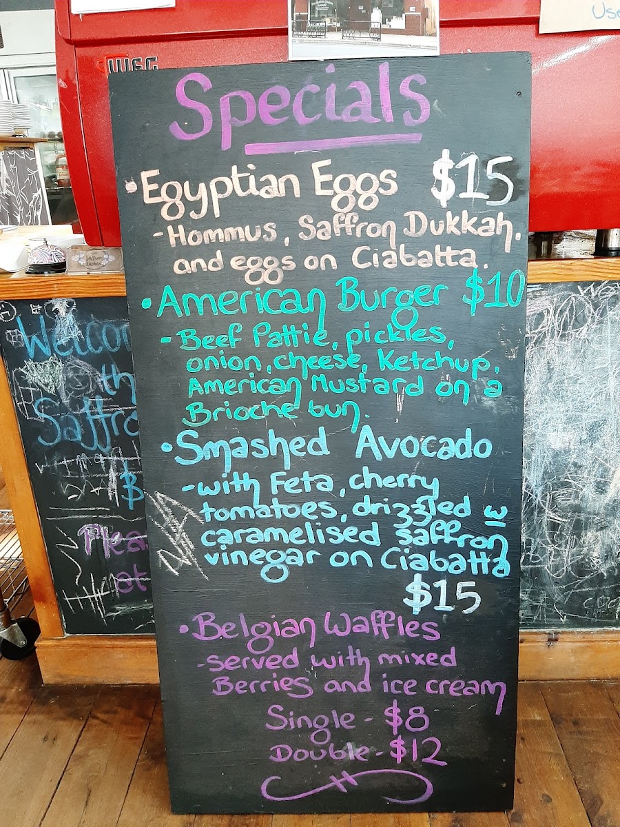 The menu at The Saffron Kitchen & Cafe offers a delightful mix of savory and sweet options, perfect for a relaxed yet flavorful dining experience. For those with a sweet tooth, the Belgian Waffles stand out as a must-try, served with chocolate fudge sauce and ice cream-a deliciously indulgent choice. If you're in the mood for something more savory, the Jaffles menu provides a variety of intriguing combinations. The Mudgee Fetta, Sundried Tomato, Homemade Olive Tapenade jaffle offers a rich and Mediterranean-inspired flavor, while the Cheese + Vegemite jaffle adds a uniquely Australian twist. For those looking to explore more options, the Hot Salami with Homemade Olive Tapenade and Cheese or the comforting Creamed Corn + Cheese jaffles are great choices. If you're craving something more adventurous, try the Nutella and Banana jaffle, a perfect blend of sweet and savory.